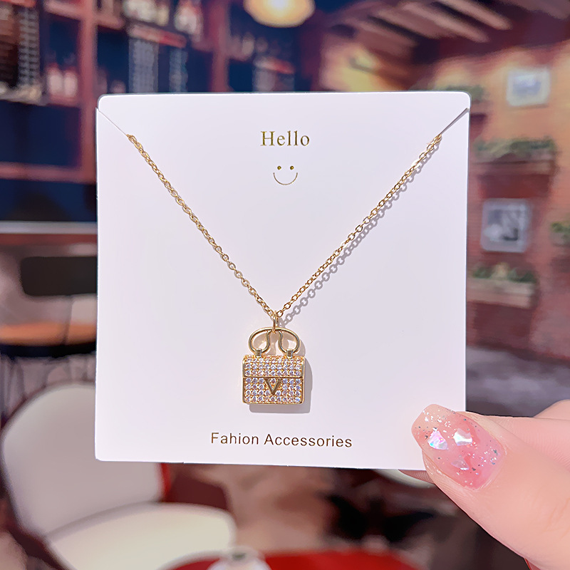 Korean style light luxury full diamond titanium steel necklace for women fashion versatile internet celebrity collarbone chain flower pendant high-end jewelry