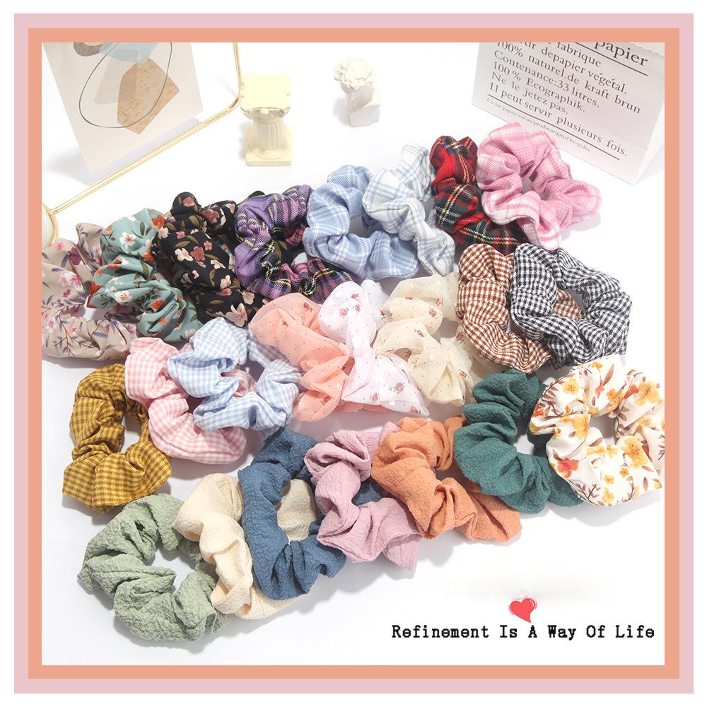 New JK plaid large intestine ring hair ring Korean version ins fabric floral headband forest series ponytail satin headdress female 数量